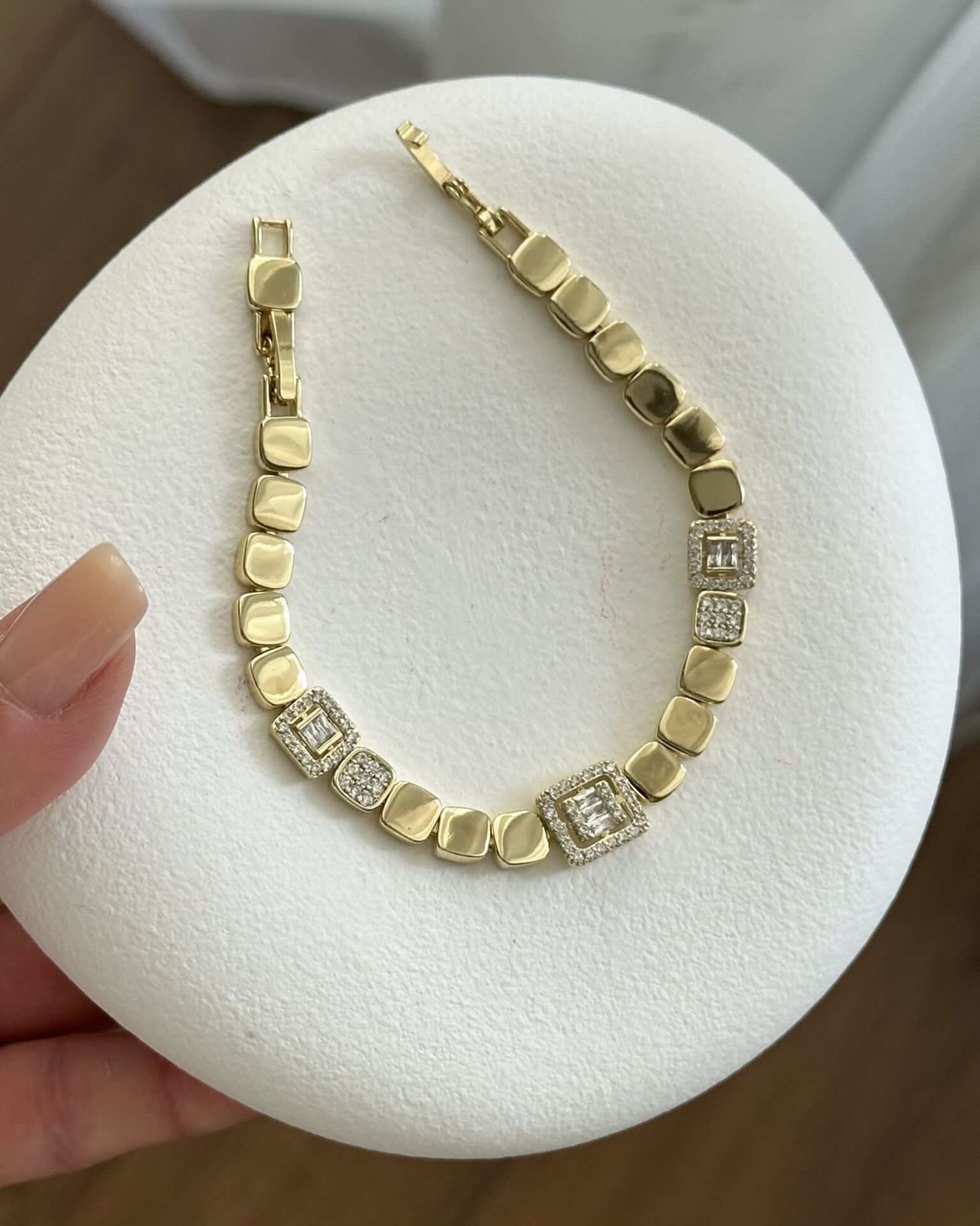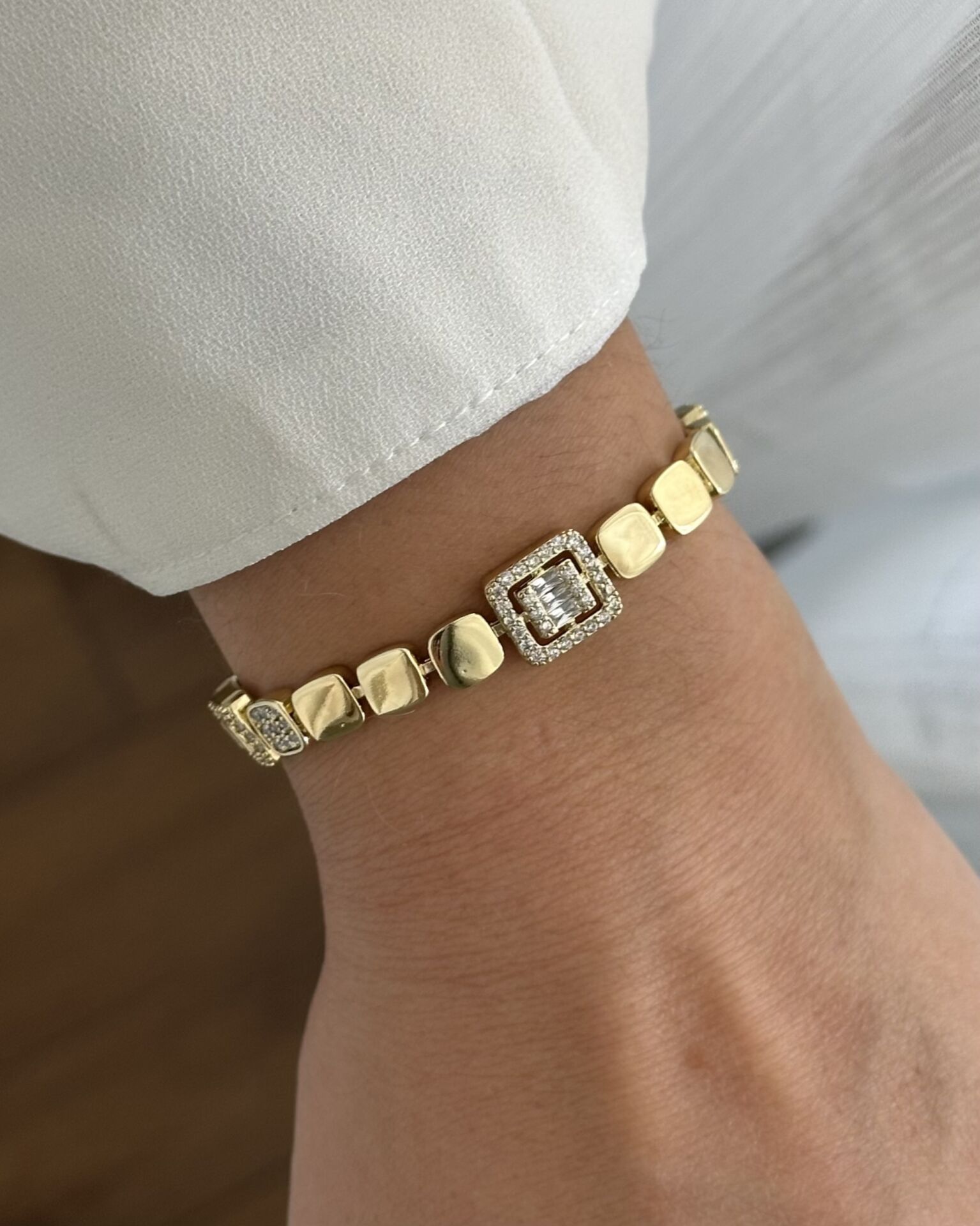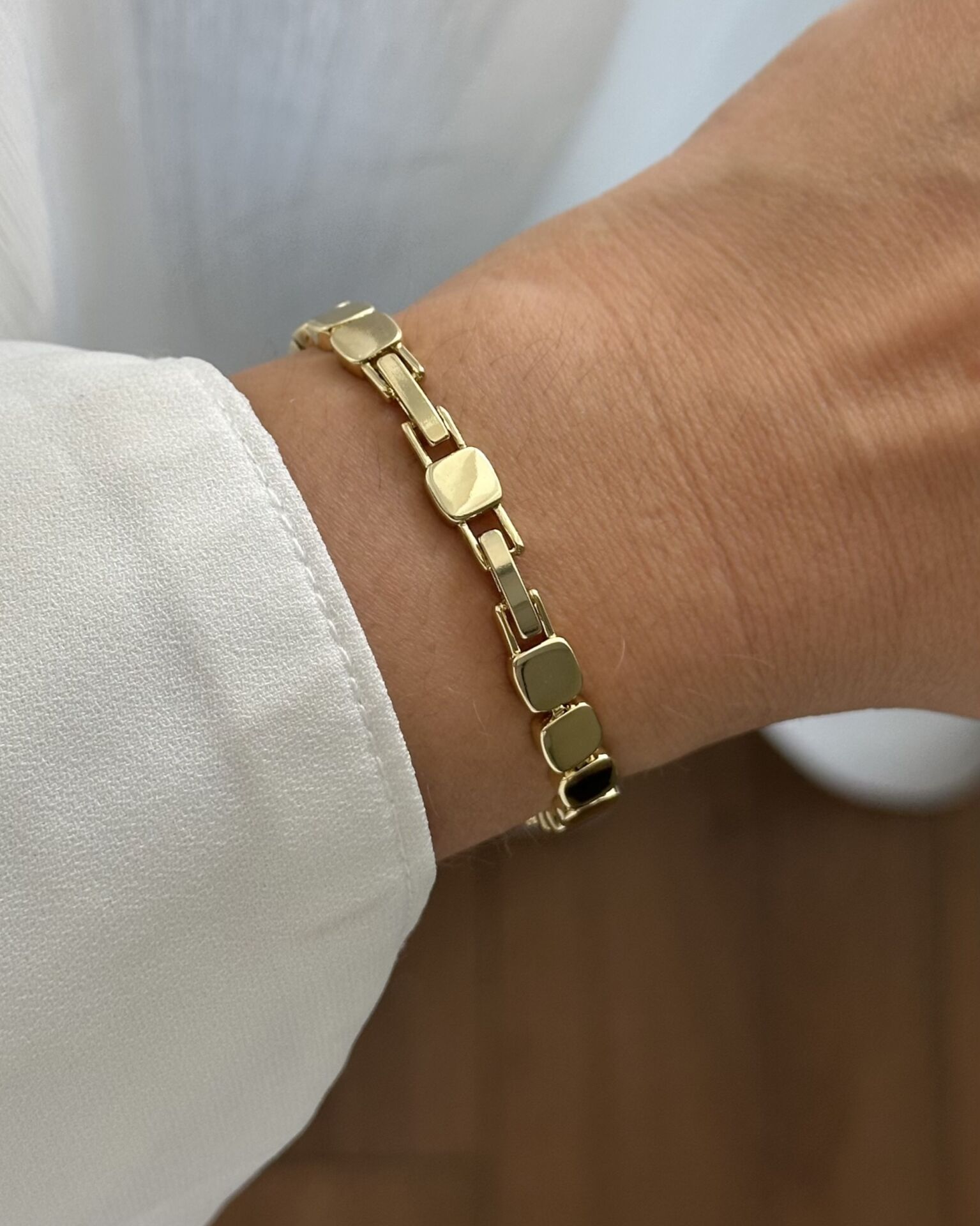 Açık Gold Baget Detaylı Plaka Bileklik