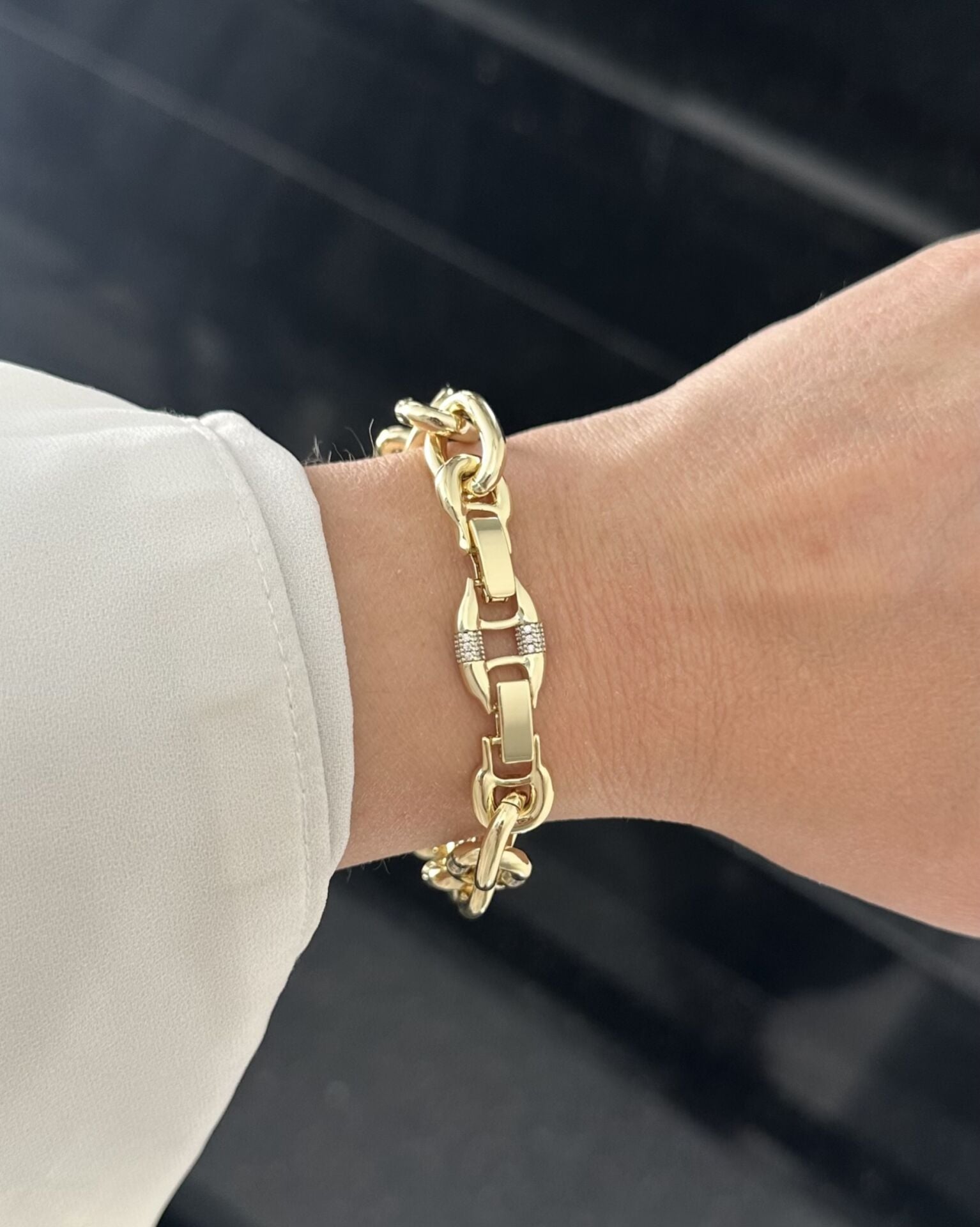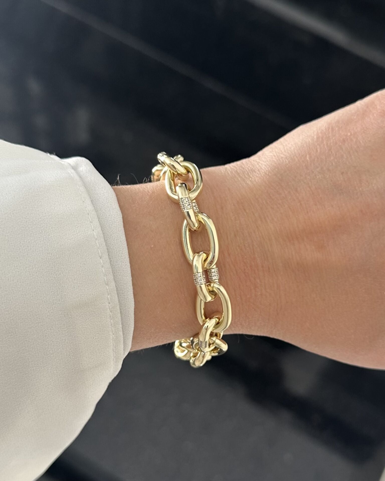 Açık Gold Kalın Zincir Taş Detaylı Bileklik