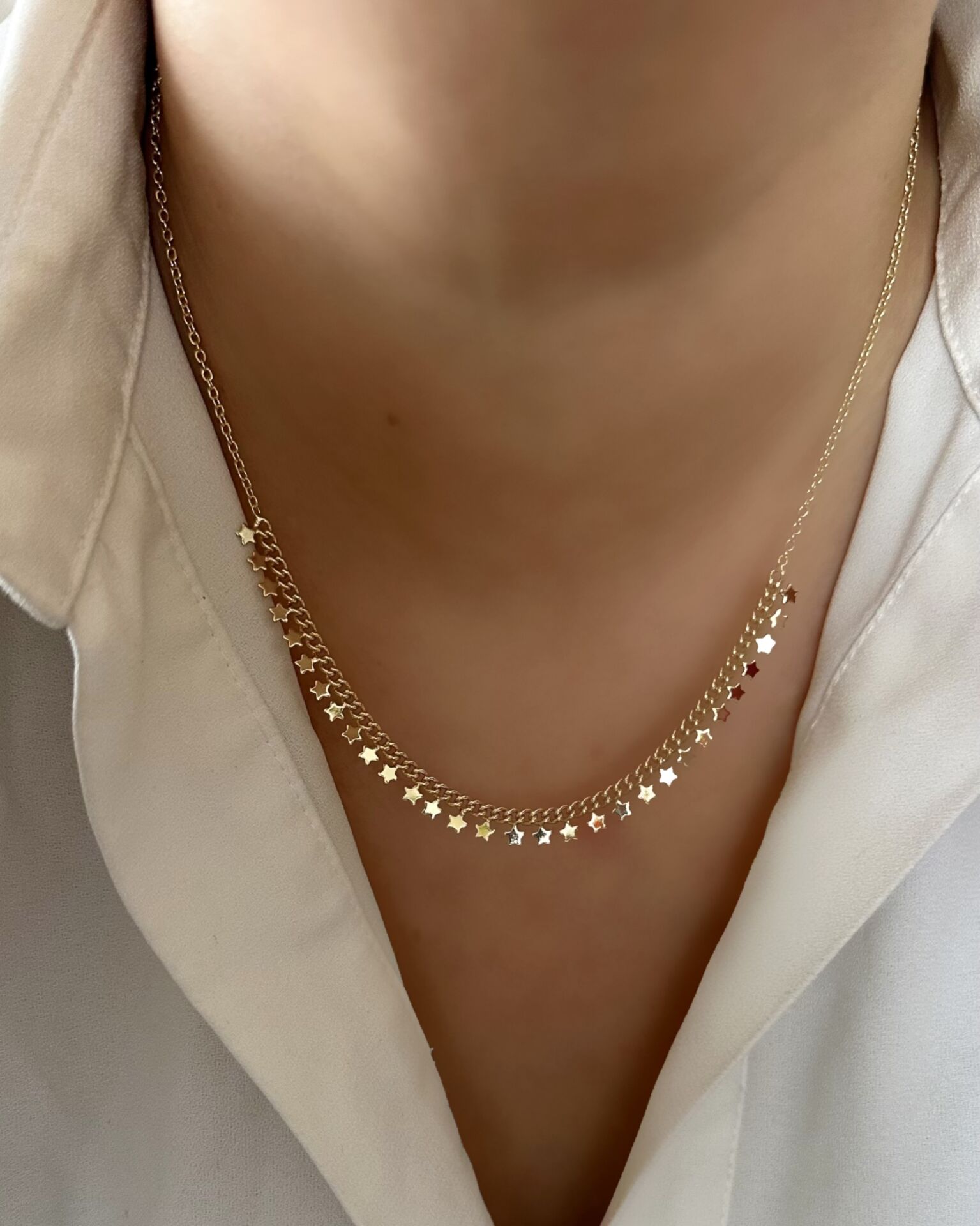 Açık Gold Mini Yıldız Sıralı Kolye