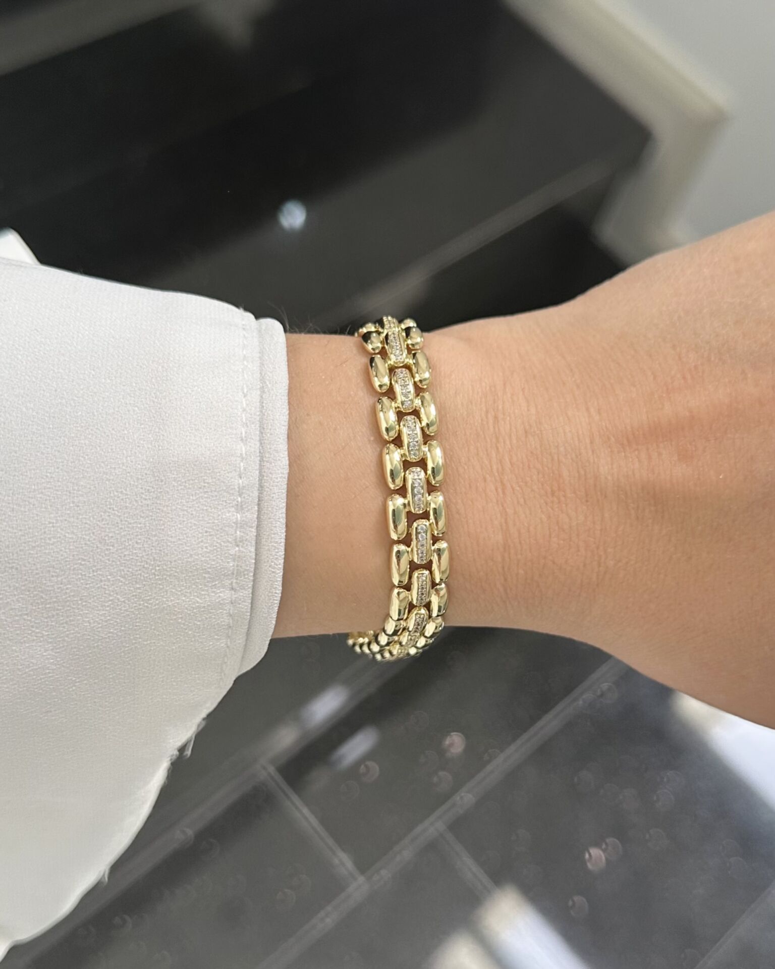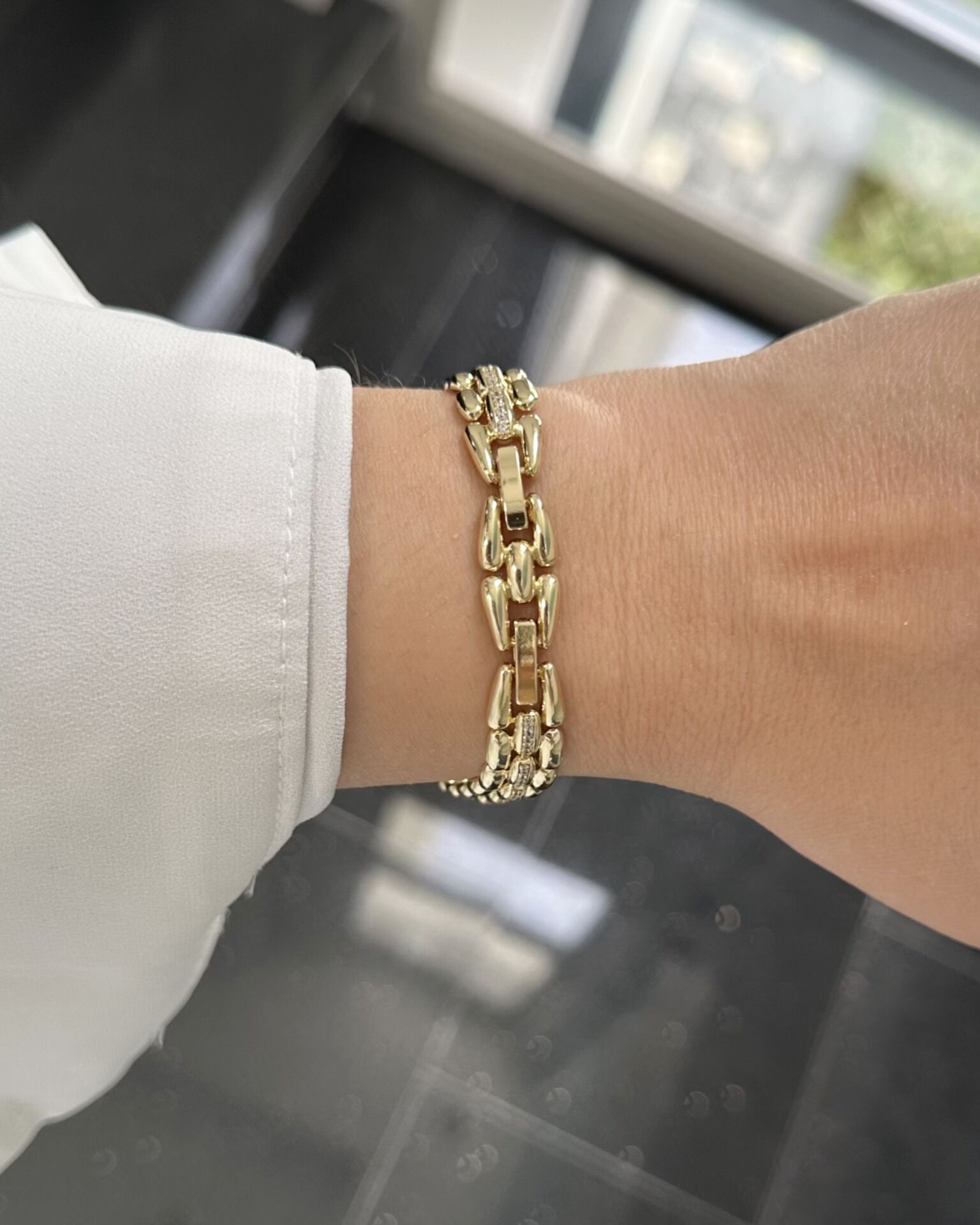 Açık Gold Ortası Taş Detaylı Bileklik