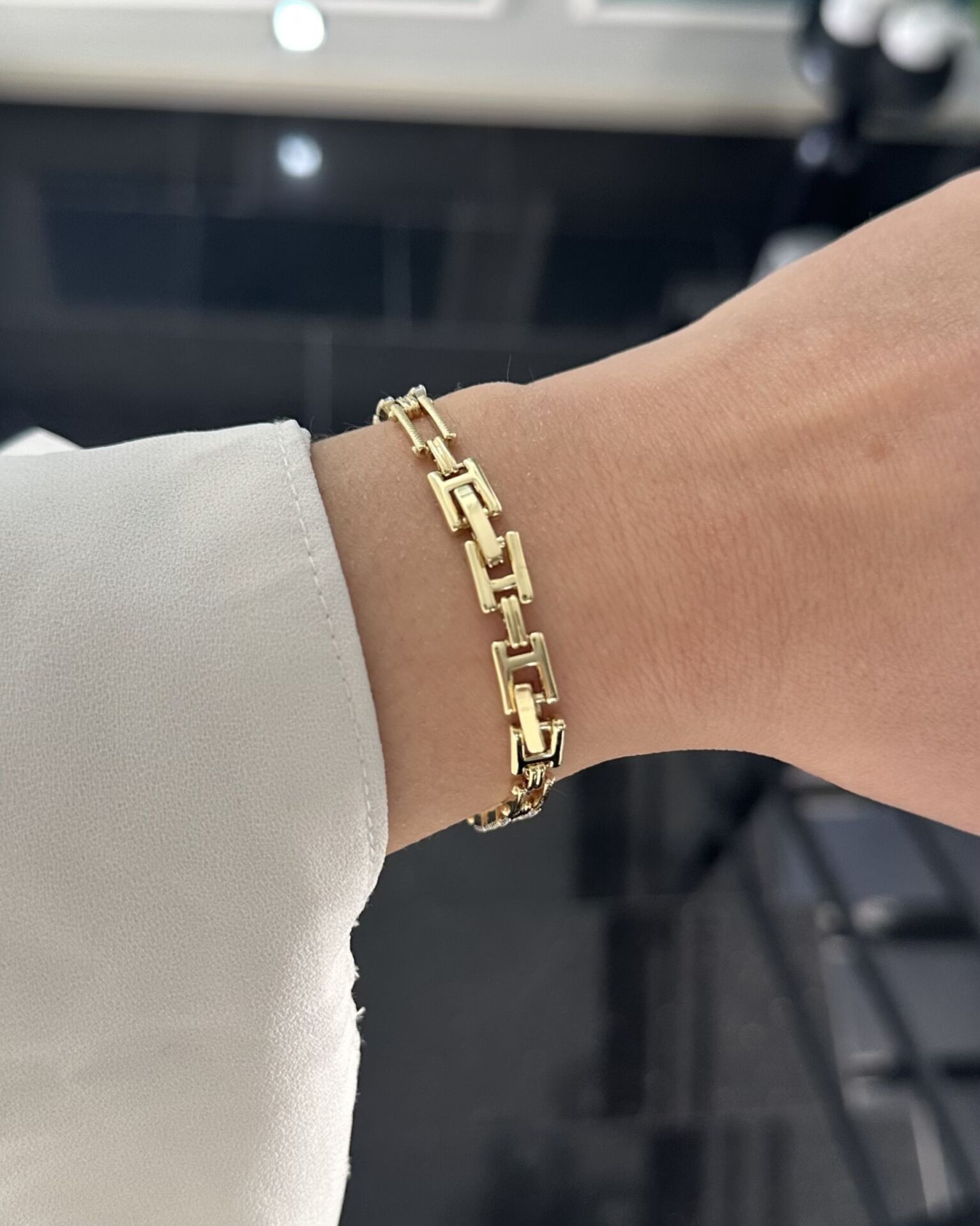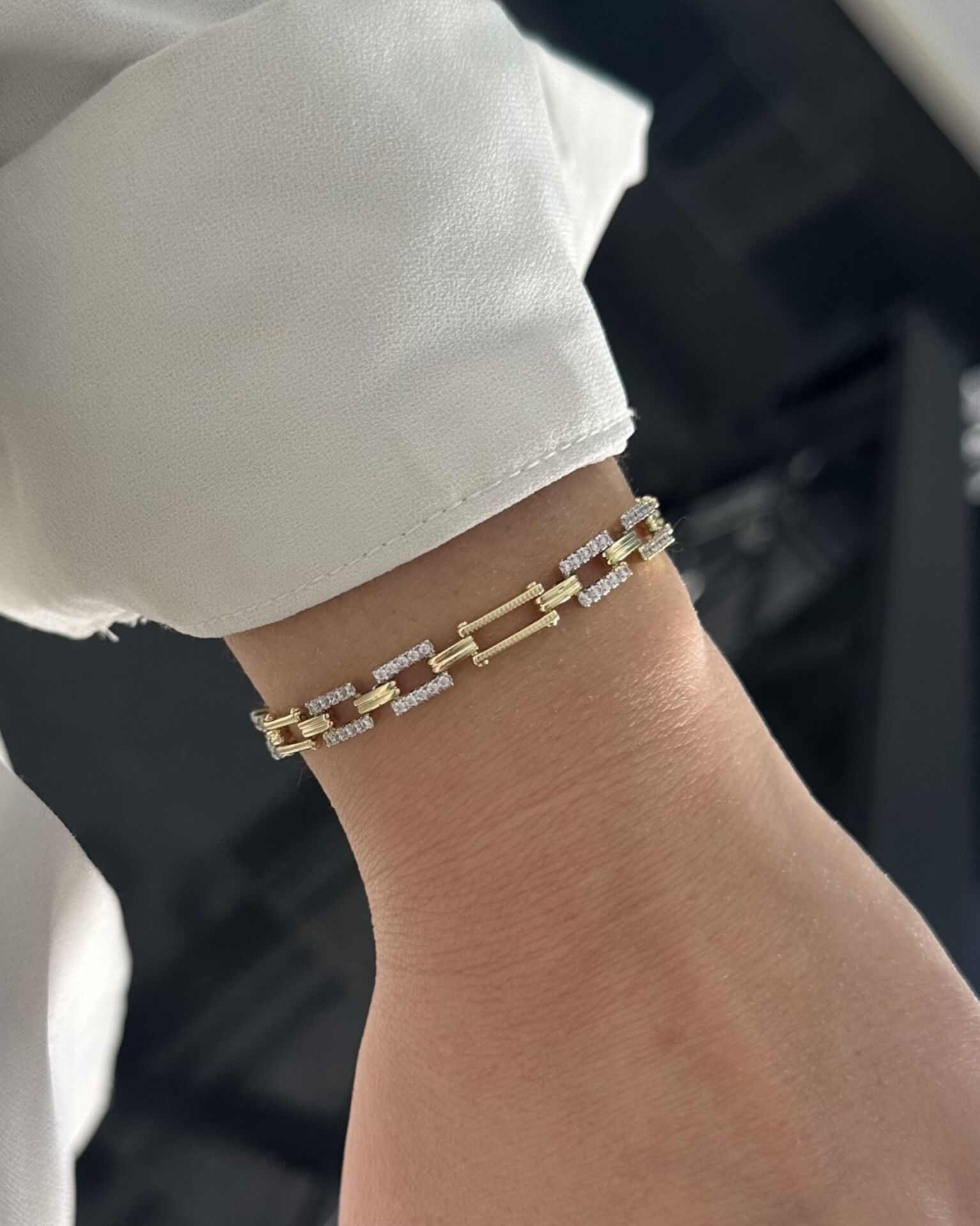 Açık Gold Silver Taşlı Zincir Bileklik