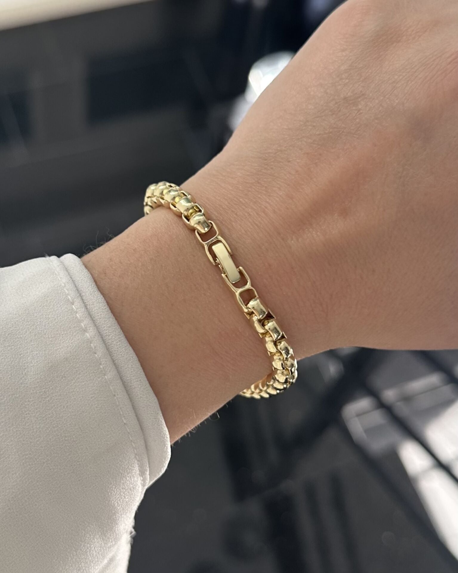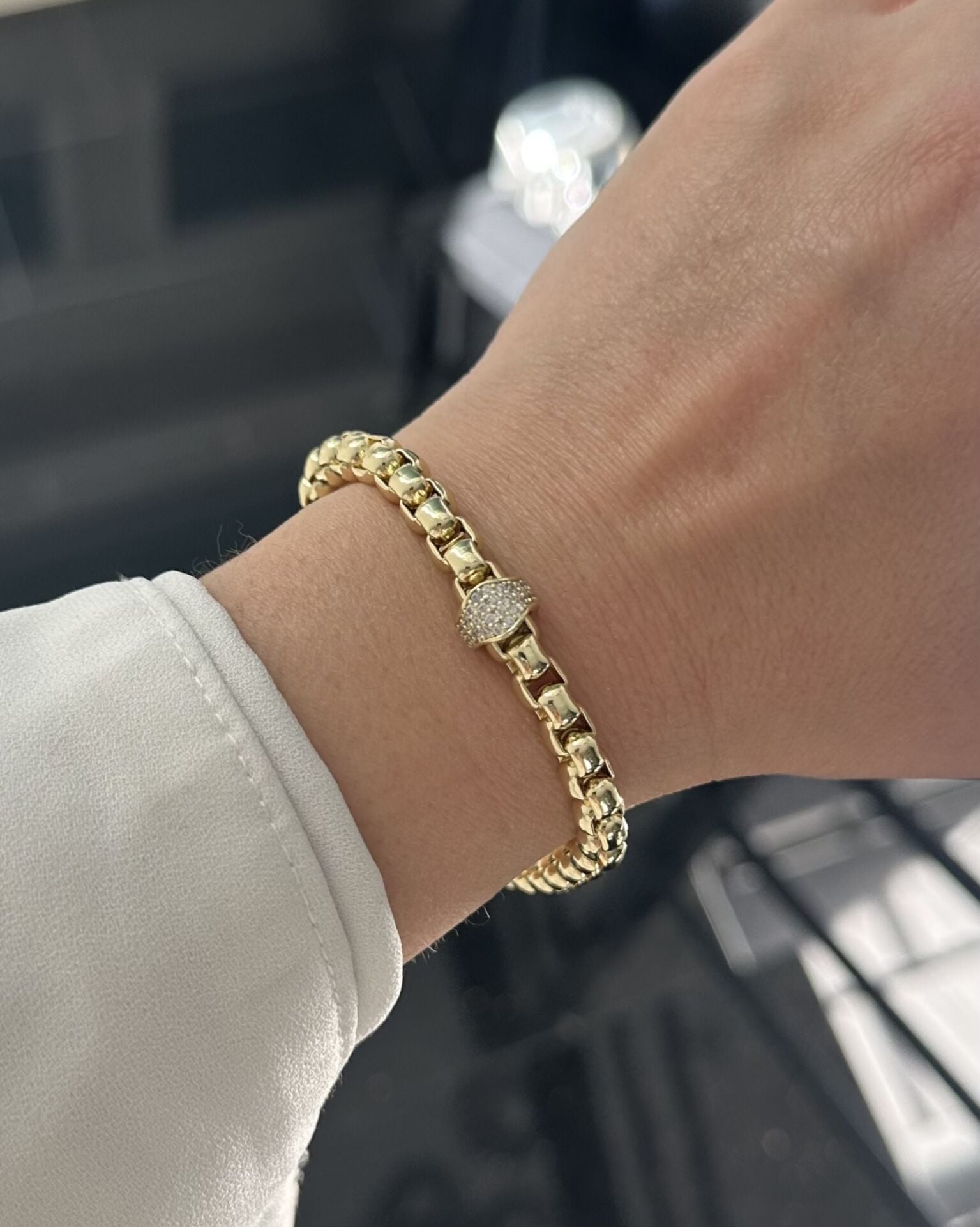 Açık Gold Taş Detaylı Kübik Zincir Bileklik