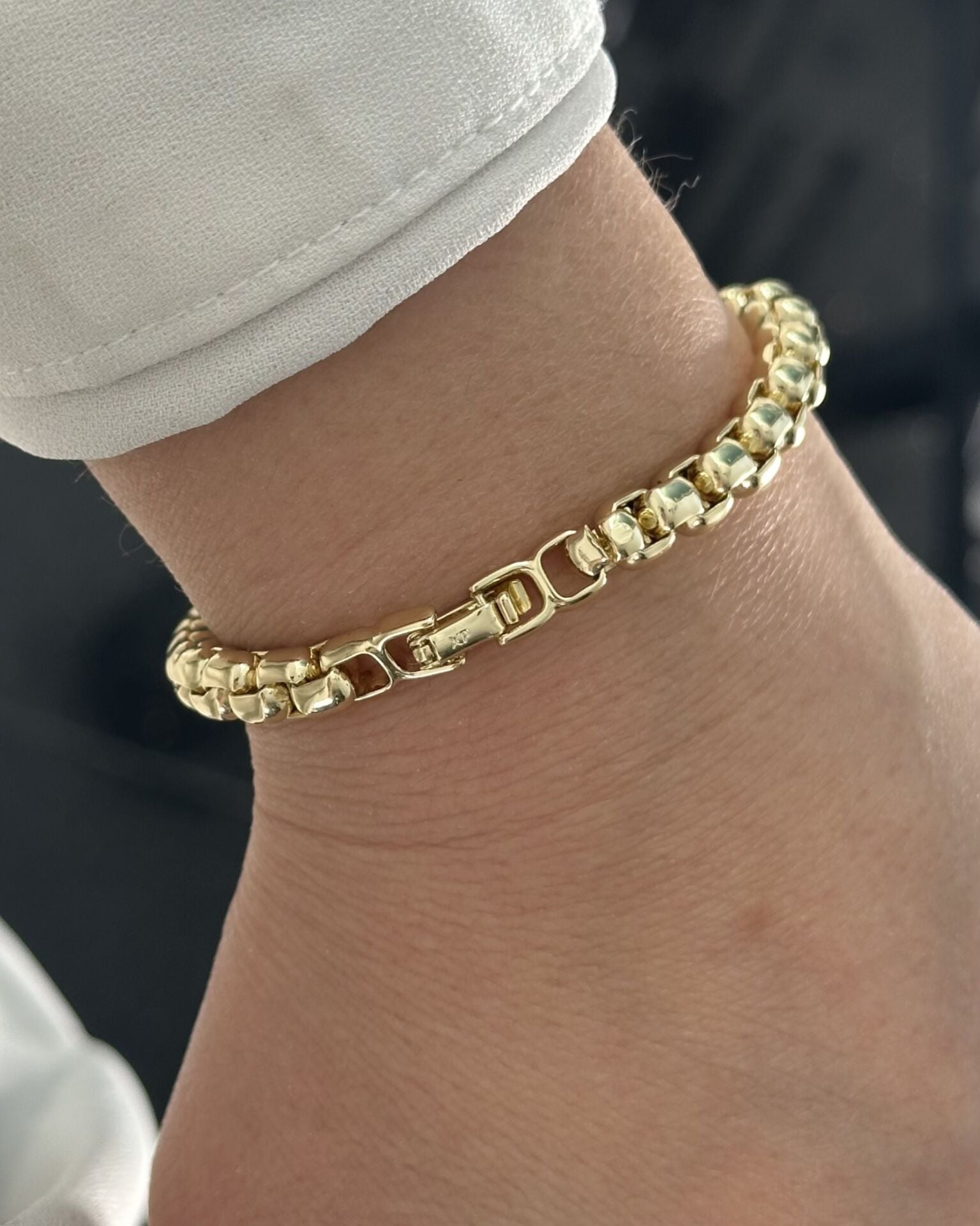 İthal, Vıp özel üretim açık gold 14 ayar altın rengindedir. Ürün üzerinde gerçek zirkon taşlar bulunmaktadır. Ürün üretiminde birinci sınıf 14 ayar altın kaplama kullanılmıştır. Görüntü itibariyle 14 ayar altından bir farkı yoktur. Birebir kuyumcu montüre sahip olan modelin taşları yine bir kuyumculuk tekniği olan mıhlama(çakma) yöntemi ile montüre sabitlenmiştir. Ağır ve sert darbeler almadığı sürece düşmez/dökülmez. Günlük kullanıma uygundur. Suya dayanıklı ve antialerjiktir. Uzun ömürlü kullanım için kimyasal temasına dikkat edilmesi önerilir. Künye uzunluğu 17cm dir.