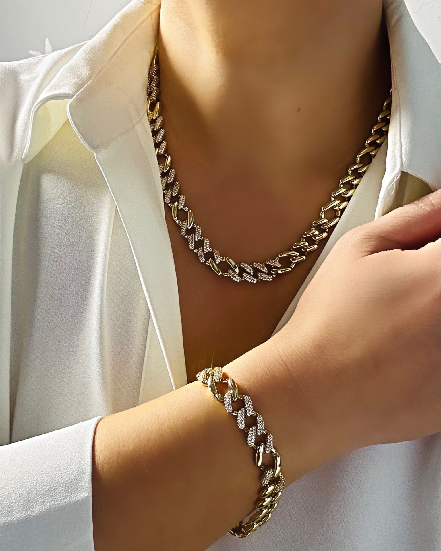 İthal, VIP üretim, birinci sınıf altın kaplama işçiliği ile nicel free teknoloji kullanılarak üretilmiştir. Görüntü, gramaj ve tüm teknik özellikleri itibariyle 14 ayar altından farksızdır. Gurmet kolye ve künyenin kilit sistemi altın ve pırlanta modellerde de kullanılan kutu kilit sistemidir. Üzerinde kullanılan taşlar altın muadilleri üzerinde kullanılan taşlar ile aynı özelliktedir. Mıhlama(çakma) kuyumculuk tekniği ile montüre tek tek sabitlenmiştir. Altın bir kolye/künyede bulunan taşların düşme/dökülme ihtimali ne kadarsa bu üründe de o kadardır. Ağır ve sert darbelere maruz kalmadığı sürece düşmez/dökülmez. Altın takılarınızla rahatlıkla kombinleyebilirsiniz. Kolye uzunluğu 50cm, künye uzunluğu 19cm dir. Suya dayanıklı ve antialerjik özelliktedir. Uzun ömürlü kullanım için ürünü kimyasal temasından koruyunuz.