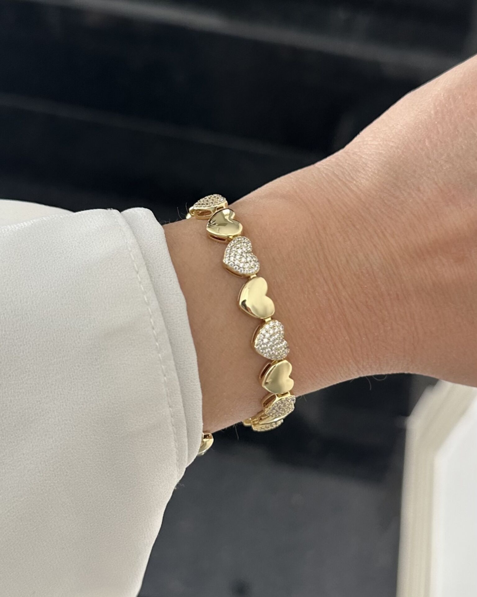 Açık Gold Taşlı Taşsız Kalpli Bileklik