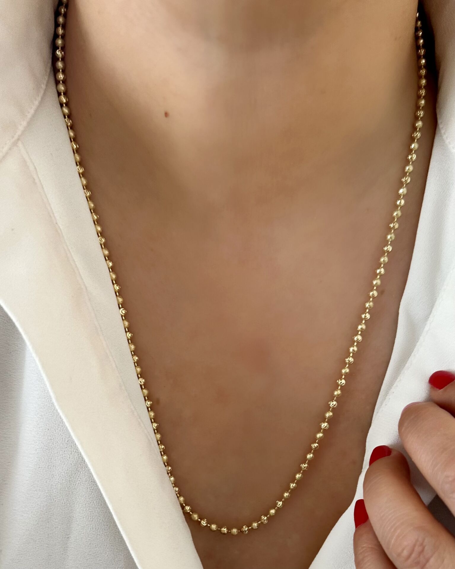İthal, Vıp özel üretim açık gold 14 ayar altın rengindedir. Ürün üretiminde birinci sınıf 14 ayar altın kaplama kullanılmıştır. Görüntü itibariyle 14 ayar altından bir farkı yoktur. Günlük kullanıma uygundur. Suya dayanıklı ve antialerjiktir. Uzun ömürlü kullanım için kimyasal temasına dikkat edilmesi önerilir. Kolye uzunluğu 50cm dir.